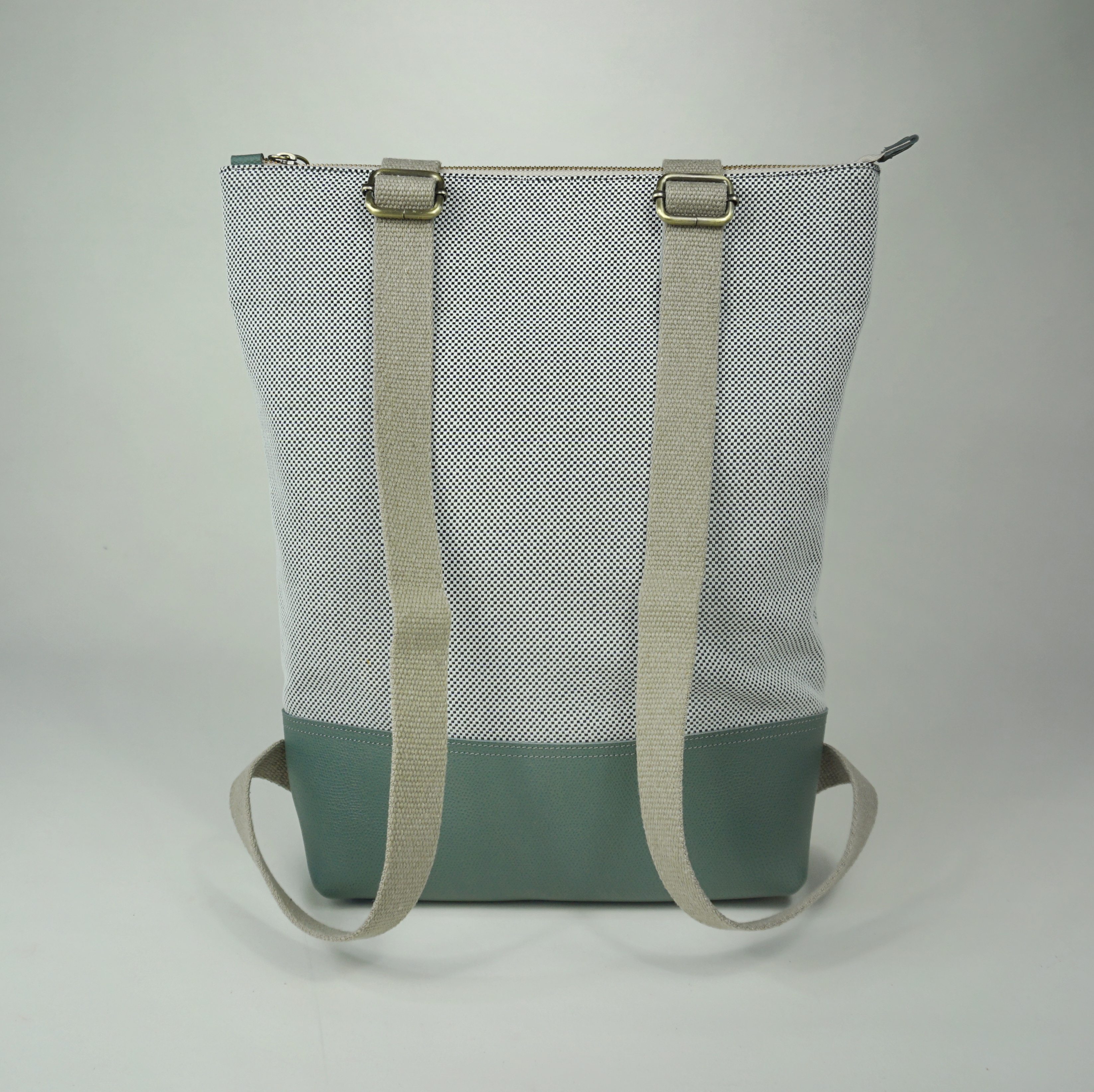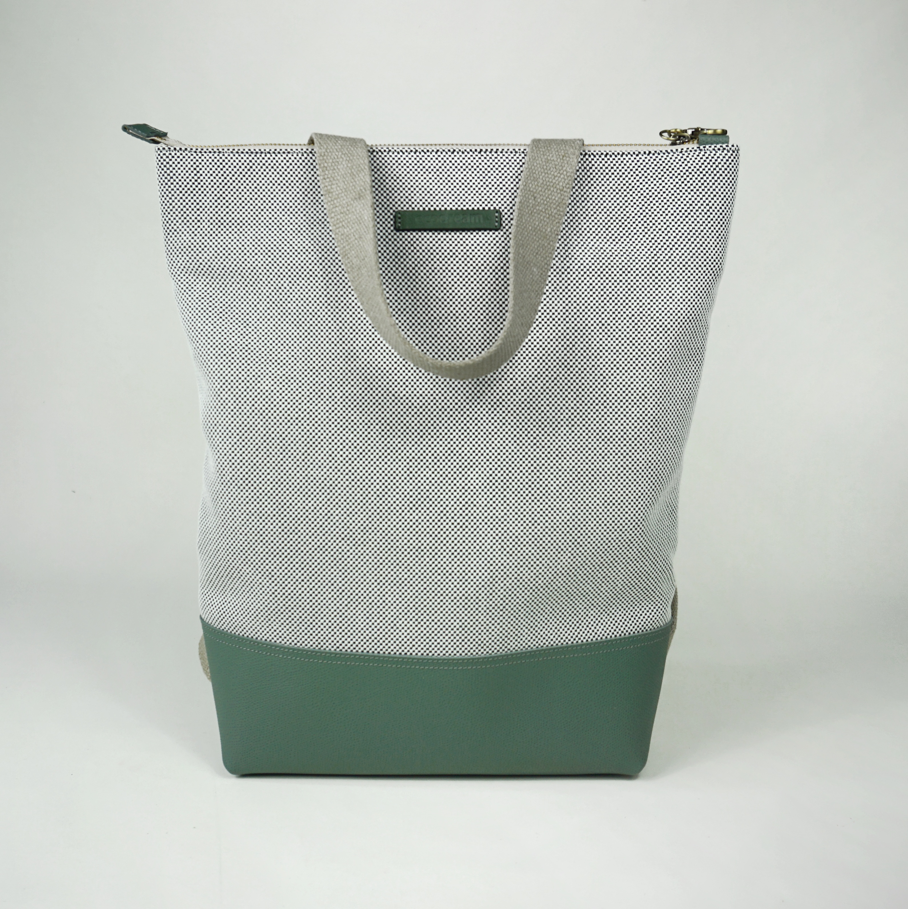 BORSA/zaino | tessuto bianco e pelle verde scuro [hyb214]