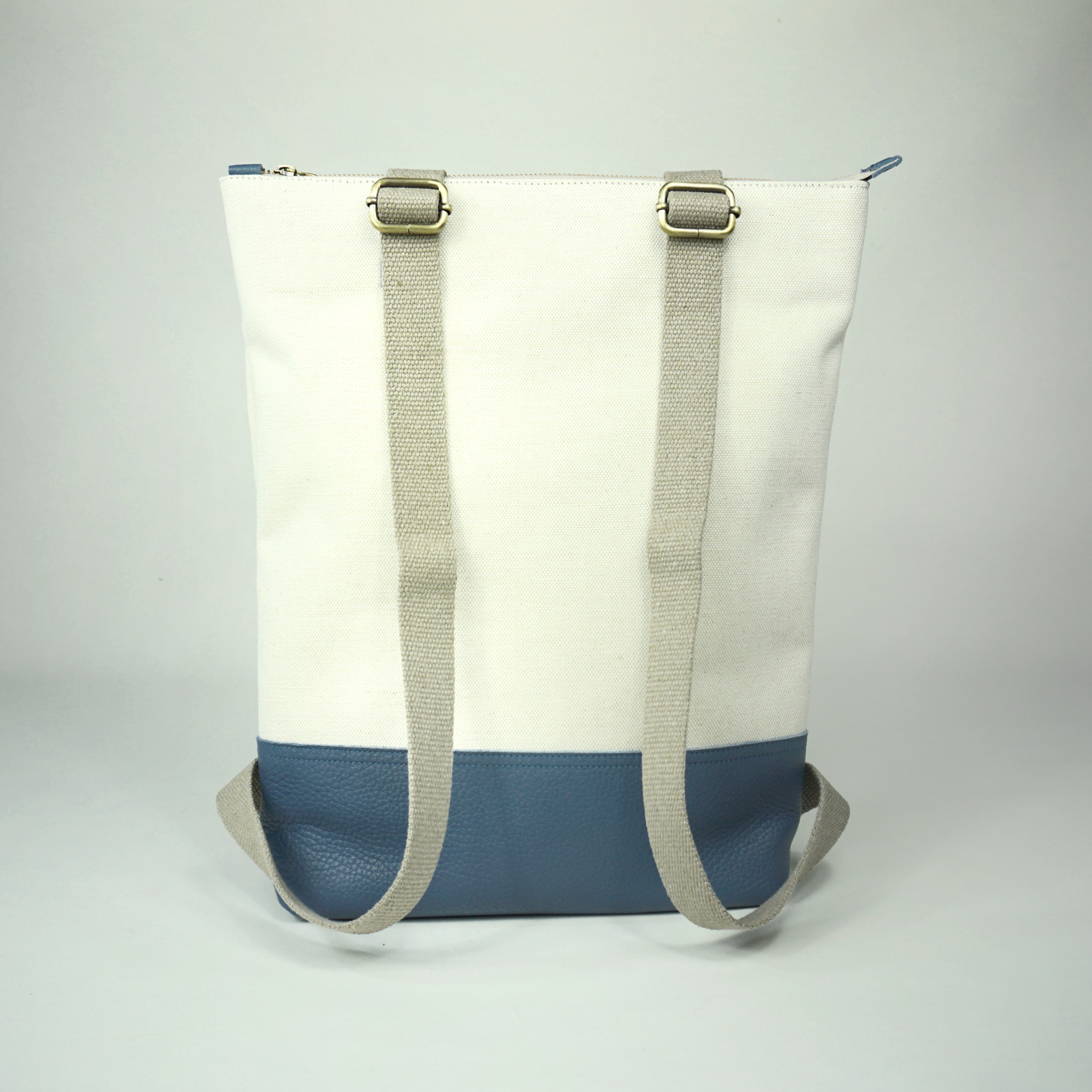 BORSA/zaino | tessuto bianco panna e pelle blu [hyb218]